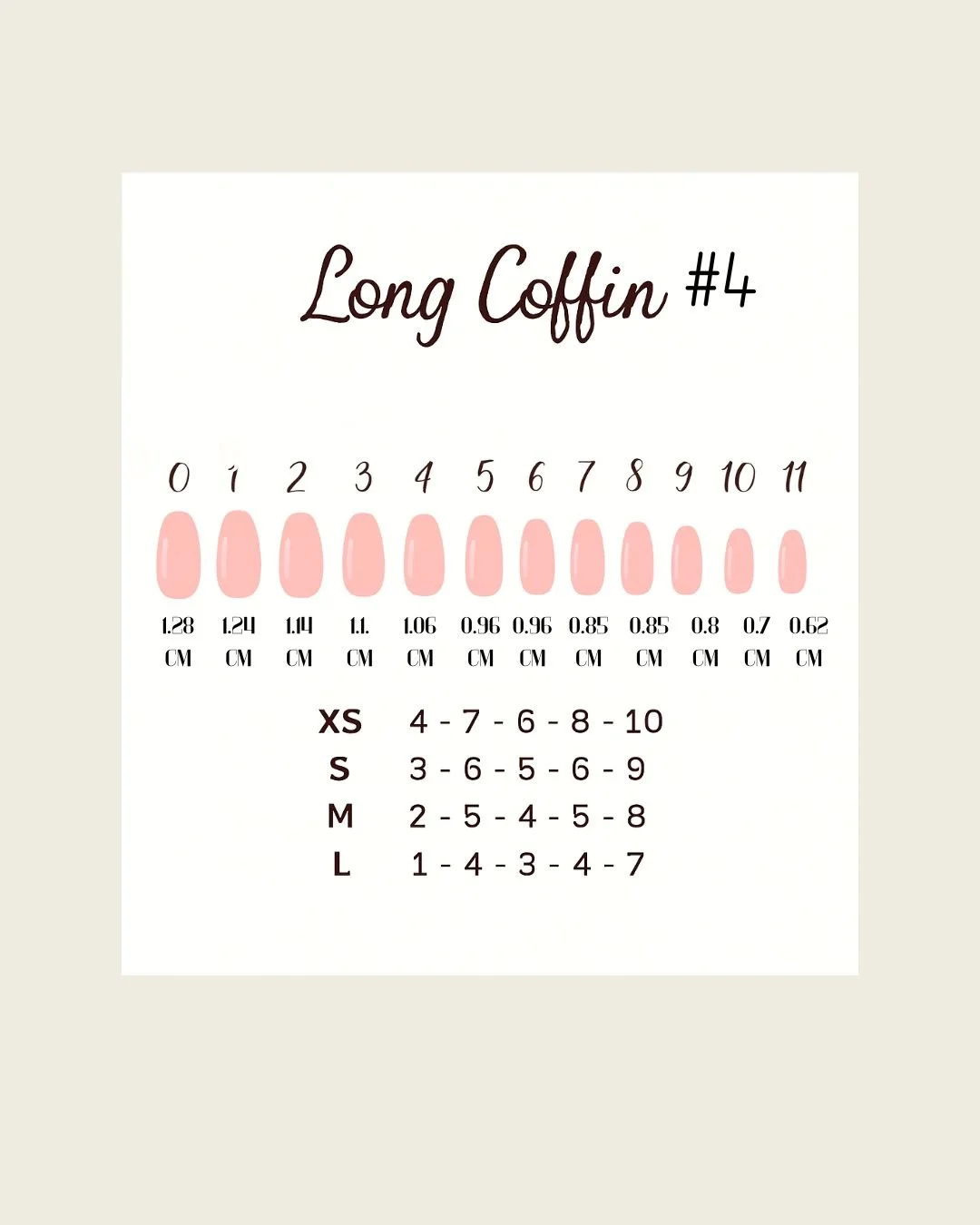 If you’re trying to find out your size that fits you no need to look further. I offer 4 different nail shapes and sizes. If you want a perfect fit I recommend grabbing my sizing kit. If not, then you can check out these images to find out your perfect fit. If none of the S, M,L matches your nails then you can let me know by sending me an email with you sizes from Left-right. Thumb-pinky.