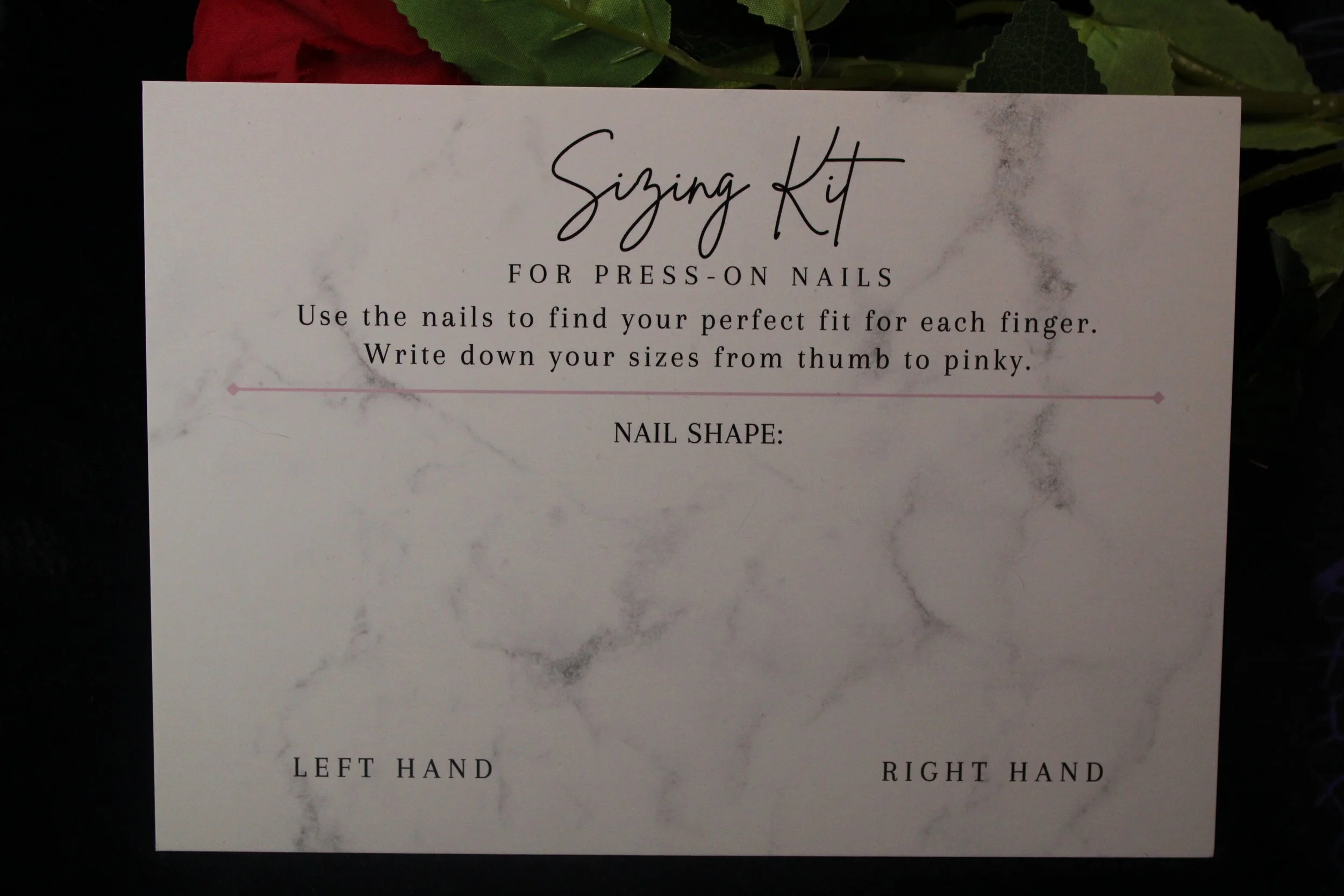 You can either size yourself or purchase a sizing kit to ensure the perfect fit. Simply select your preferred size, but keep in mind that not every design is available in every shape. If you’re between sizes, we recommend choosing the larger one. Detailed size measurements are included in the photos to help you decide.